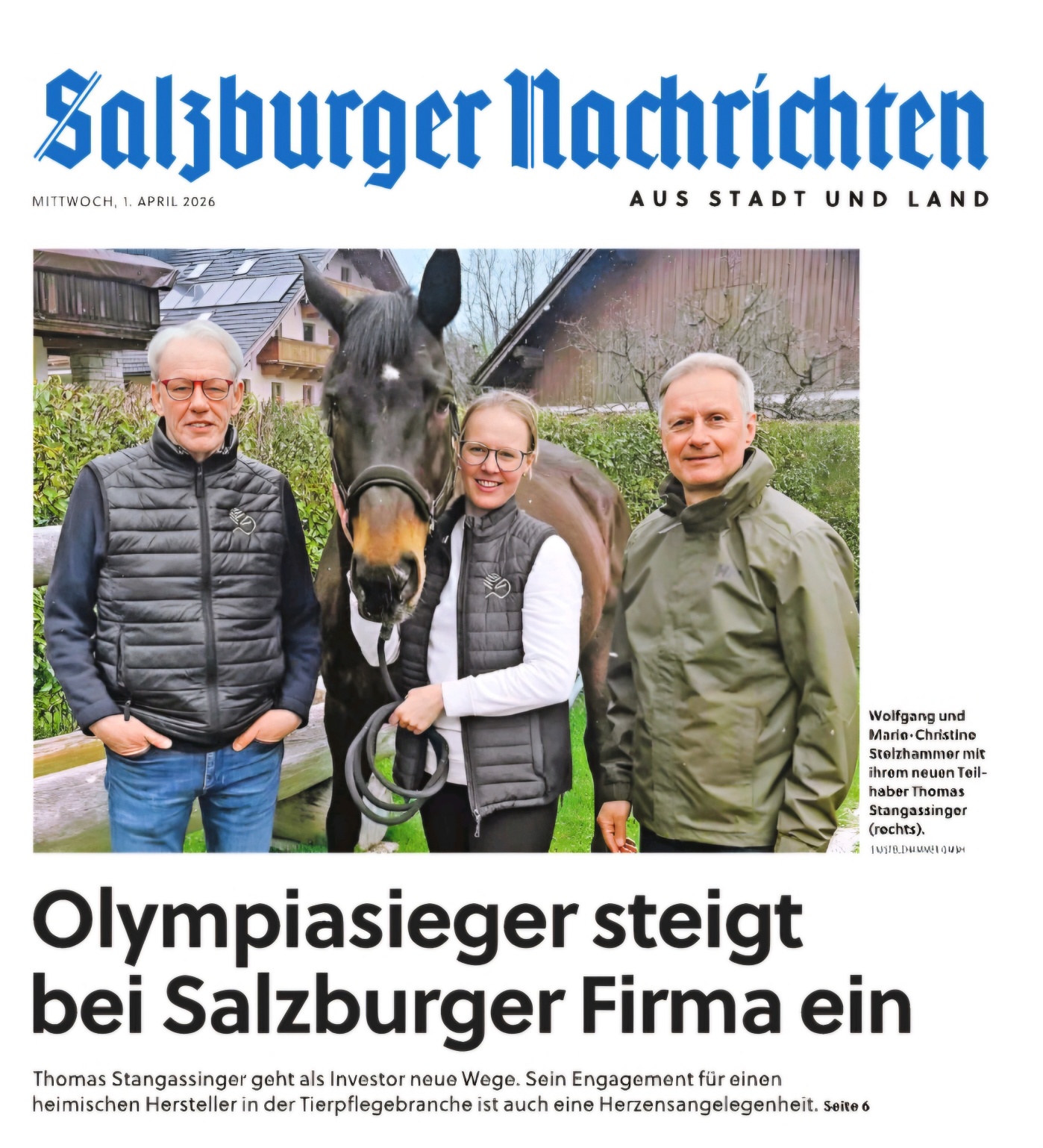 Die Salzburger Nachrichten berichten am 01.04.2026 vom Einstieg unseres neuen Partners Herrn Thomas Stangassinger in die Stelzhammer GmbH.
