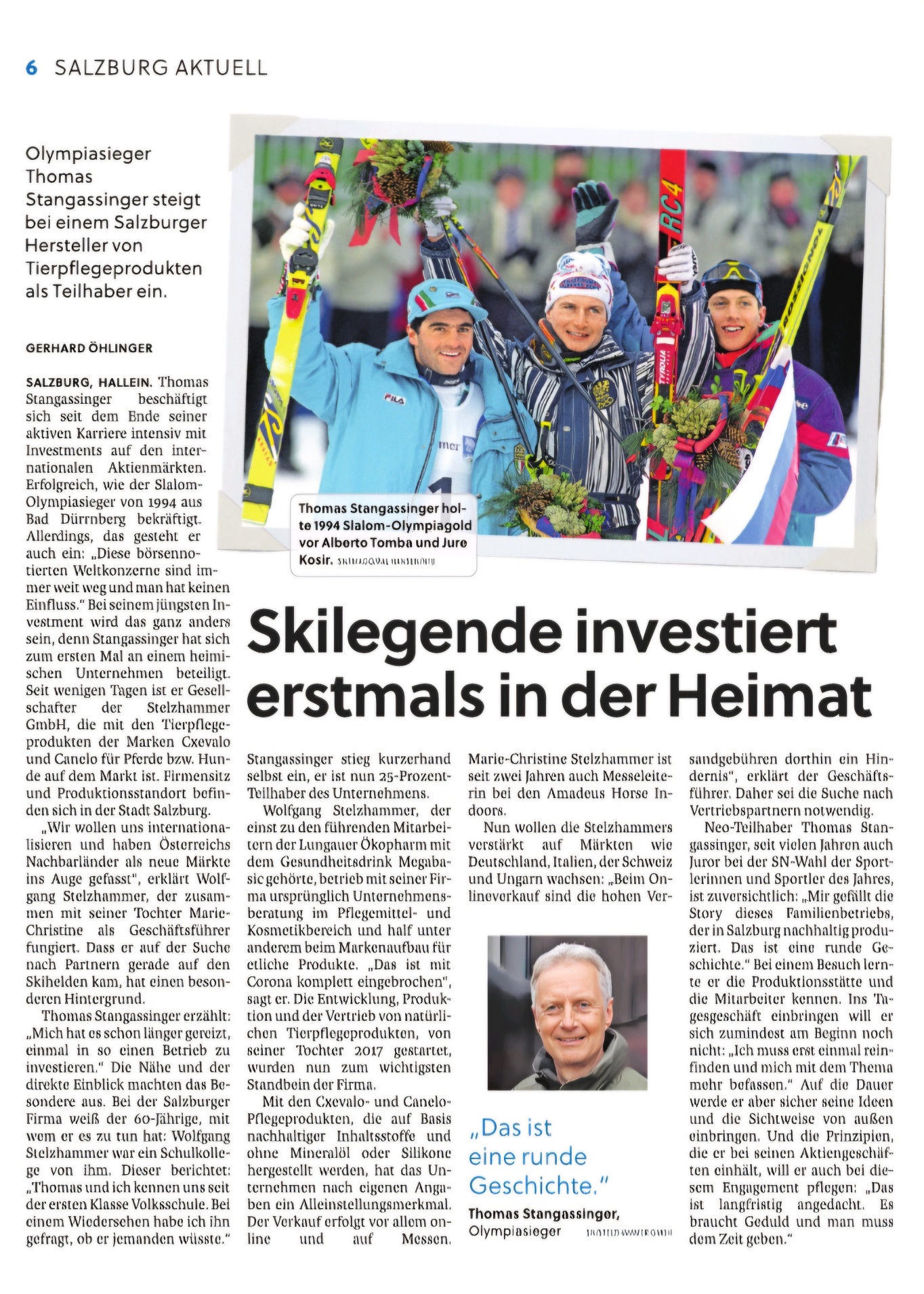 Wir freuen uns sehr über den neuen Teilhaber und danken den SN und Herrn Gerhard Öhlinger für den tollen Bericht.